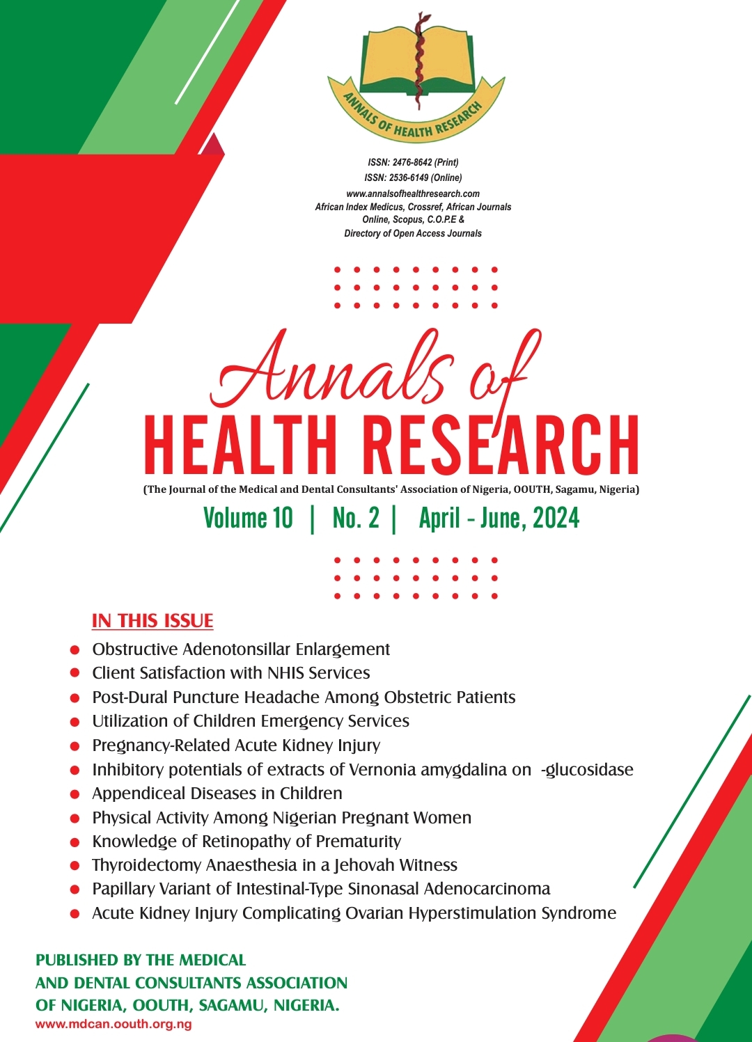Copyright (c) 2024 Annals of Health Research (The Journal of the Medical and Dental Consultants Association of Nigeria, OOUTH, Sagamu, Nigeria)